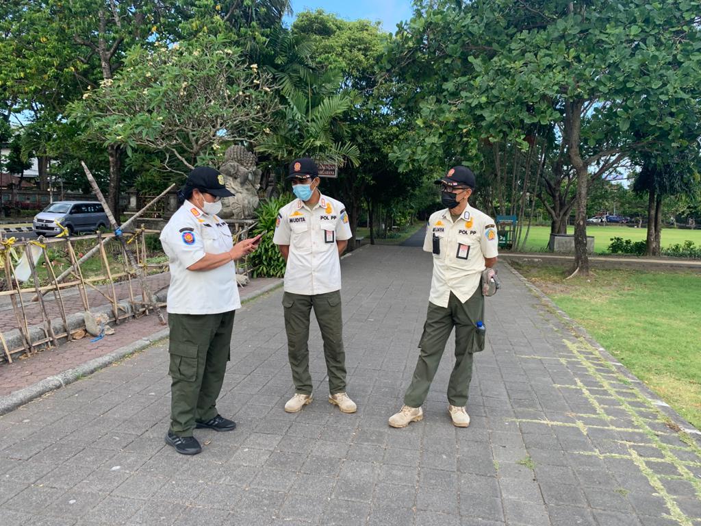 SATPOL PP TERUS-MENERUS MENGEDUKASISatuan Polisi Pamong Praja Provinsi Bali secara rutin laksanakan giat Penegakan Peraturan gubernur Bali Nomor 10 tahun 2021 dan Surat Edaran Gubernur Bali No. 14 Tahun 2021 tentang Perpanjangan PPKM Level 4 Corona Virus Disease 2019 dalam Tatanan Kehidupan Era Baru. Giat menyasar Objek-objek ruang publik yang berpeluang menimbulkan kerumanan yang mengakibatkan terjadinya penularan Covid-19. Lapangan Monumen Perjuangan Rakyar Bali adalah fasilitas ruang publik yang disediakan Pemerintah bagi masyarakat. Namun pada saat kondisi masa PPKM Level 4 belum bisa dimanfaatkan. Satpol PP hadir untuk mengingatkan memberikan pembinaan dan imbauan agar untuk mentaati kebijakan yang diambil Pemerintah. Tujuan utamanya adalah terjadinya pemutusan mata rantai penyebaran Covid-19 di Bali dan Kehidupan Bali Era Baru segera terwujud. Denpasar, 5 September 2021.