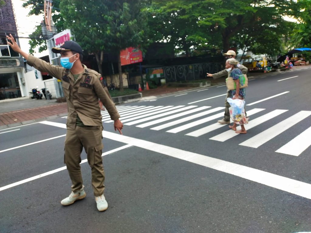 Satuan Polisi Pamong Praja Provinsi Bali konsisten laksanakan giat dalam rangka penegakan protokol kesehatan dalam upaya mengendalikan penyebaran Covid-19 di ruang usaha maupun maupun ruang-ruang publik yang memungkinkan adanya kerumunan. Selain giat gabungan bersama Polda Bali juga dilaksanakan giat secara mandiri. Giat dilaksankan pagi,siang dan malam hari.Tujuannya untuk memastikan warga dalam beraktifitas tetap mematuhi protokol kesehatan. Giat dilaksanakan secara humanis dengan cara mengingatkan, menghimbau warga masyarakat mematuhti protokol kesehatan dan bagi pelaku usaha agar selalu melengkapi sarana protokol kesehatan. Denpasar, 23 Pebruari 2022.
