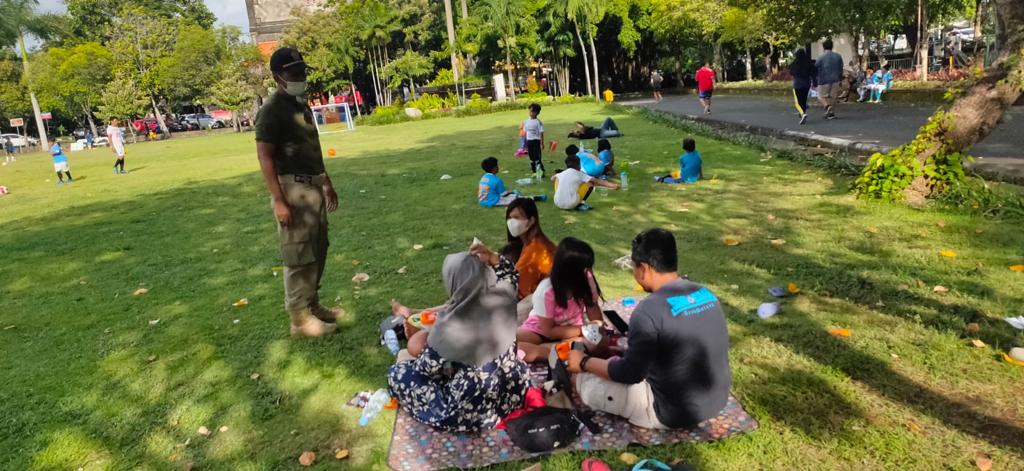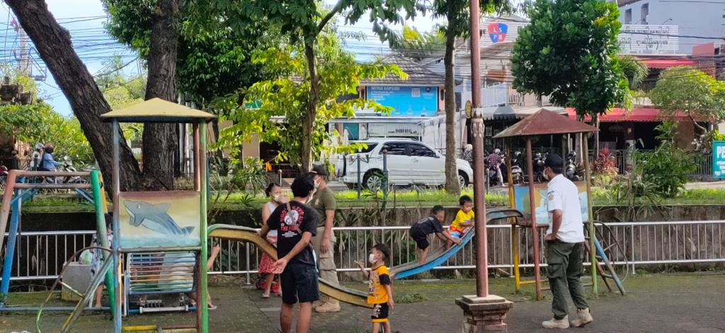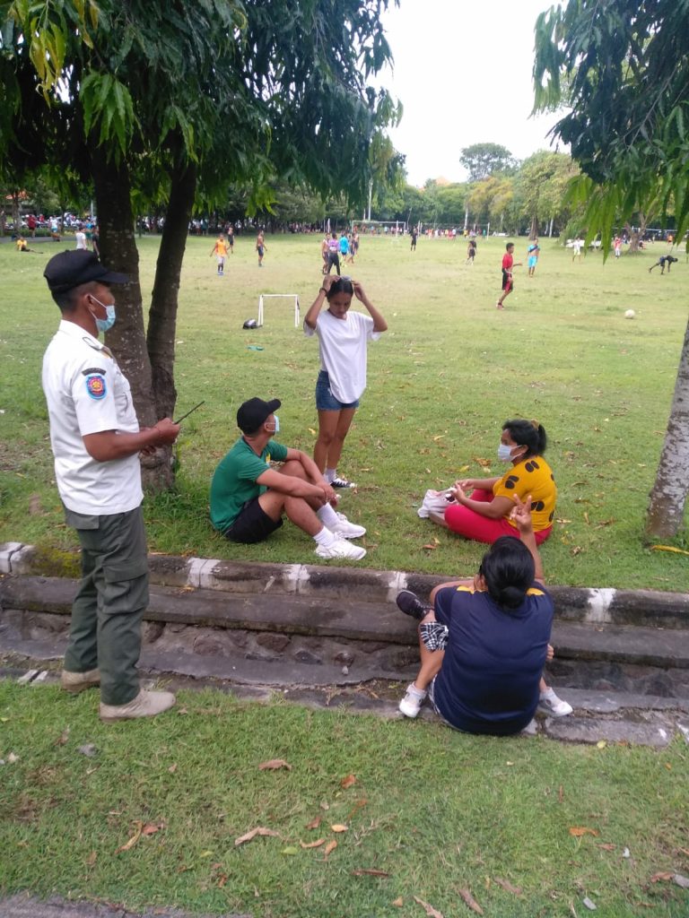 Satuan Polisi Pamong lagi-lagi mengingatkan warga masyarakat yang beraktifitas di ruang-ruang publik agar patuh pada kebijakan Pemerintah dalamu paya pengendalian Covid-19. Karena Covid-19 belum berakhir sehingga perlu selalu diingatkan untuk selalu selalu diingatkan agar selalu mematuhi protokol kesehatan di ruang-ruang publik yang bisa memacu penyebaran Covid-19. Denpasar, 7 Pebruari 2022.