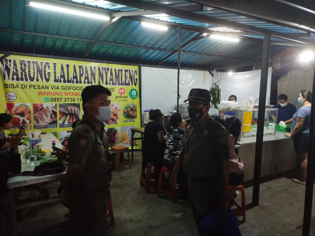 Satuan Polisi Pamong Praja tidak bosdan-bosannya hadir di ruang-ruang publik untuk mengingatkan warga masyarakat yang melakukan aktifitas ekonomi dan masyarakat yang di luar rumah untuk selalu mentaati protokol kesehatan. Tujuannya untuk memastikan warga masyarakat patuh pada peraturan pemerintah dalam upaya mencegah dan mengendalikan Covid-19. Sehingga upaya Pemerintah akan segera menampakkan hasilnya. Denpasar, 21 Agustus 2021.