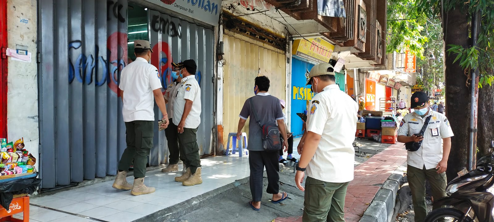 Satuan Polisi Pamong Praja Provinsi Bali pada masa diberlakukannya PPKM Darurat secara terus menerus lakukan patroli di seputaran Kota Denpasar dan Kabupaten Badung. Tujuan diadakannya kegiatan ini untuk memastikan warga masyarakat pelaku usaha yang tidak bergerak pada sektor esensial dan kritikal dengan kesadaran penuh mentaati kebijakan yang diambil pemerintah dalam rangka memutus mata rantai penyebaran Covid-19. Dalam patroli di lapangan masih ditemukan pelaku usaha yang melanggar ketentuan tersebut. Agar tidak mengulangi perbuatannya pelaku diberi pembinaan sehingga pelaksanaan PPKM Darurat dapat mencapai hasil yang maksimal. Denpasar, 14 Juli 2021.