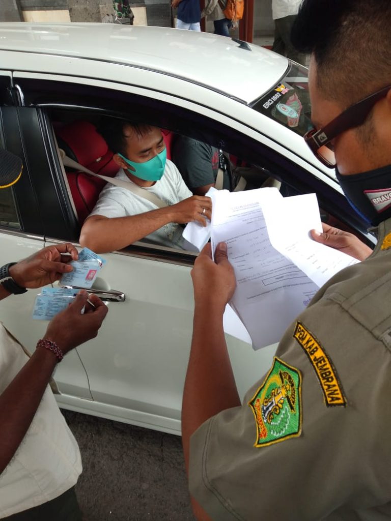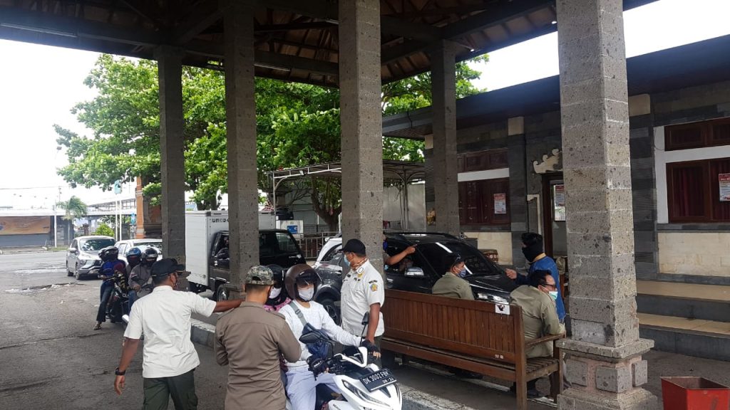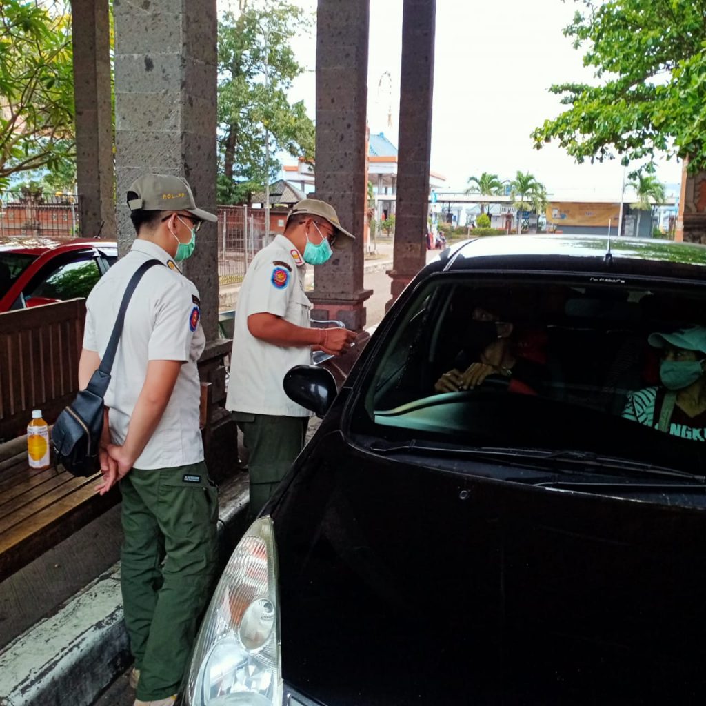 Giat Penegakan Peraturan Gubernur Bali Nomor 46 Tahun 2020 Tentang Penerapan Disiplin dan Penegakan Hukum Protokol Kesehatan Sebagai Upaya Pemerintah Pencegahan dan Pengendalian Covid-19 Dalam Tatanan Kehidupan Kehidupan Era Baru, di Pintu Masuk Bali Pelabuhan Gilimanuk untuk memastikan arus kedatangan orang taat pada Protokol Kesehatan dimulai sejak 4 Oktober 2020.