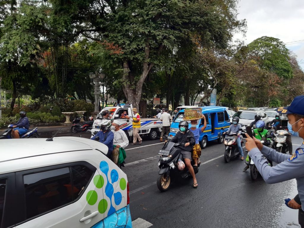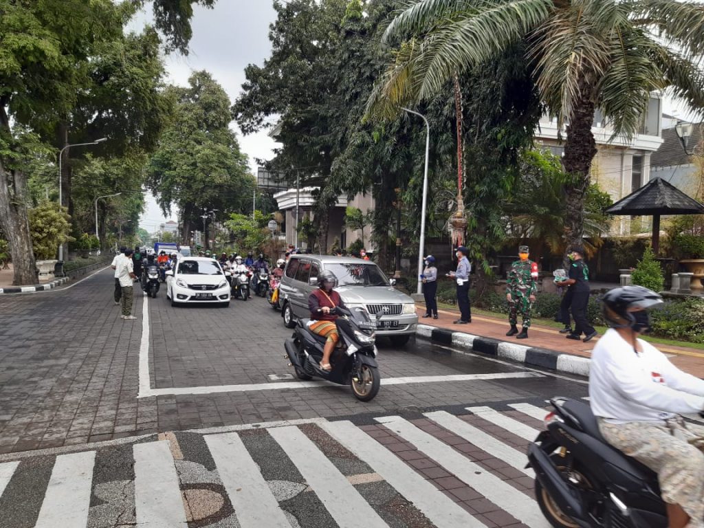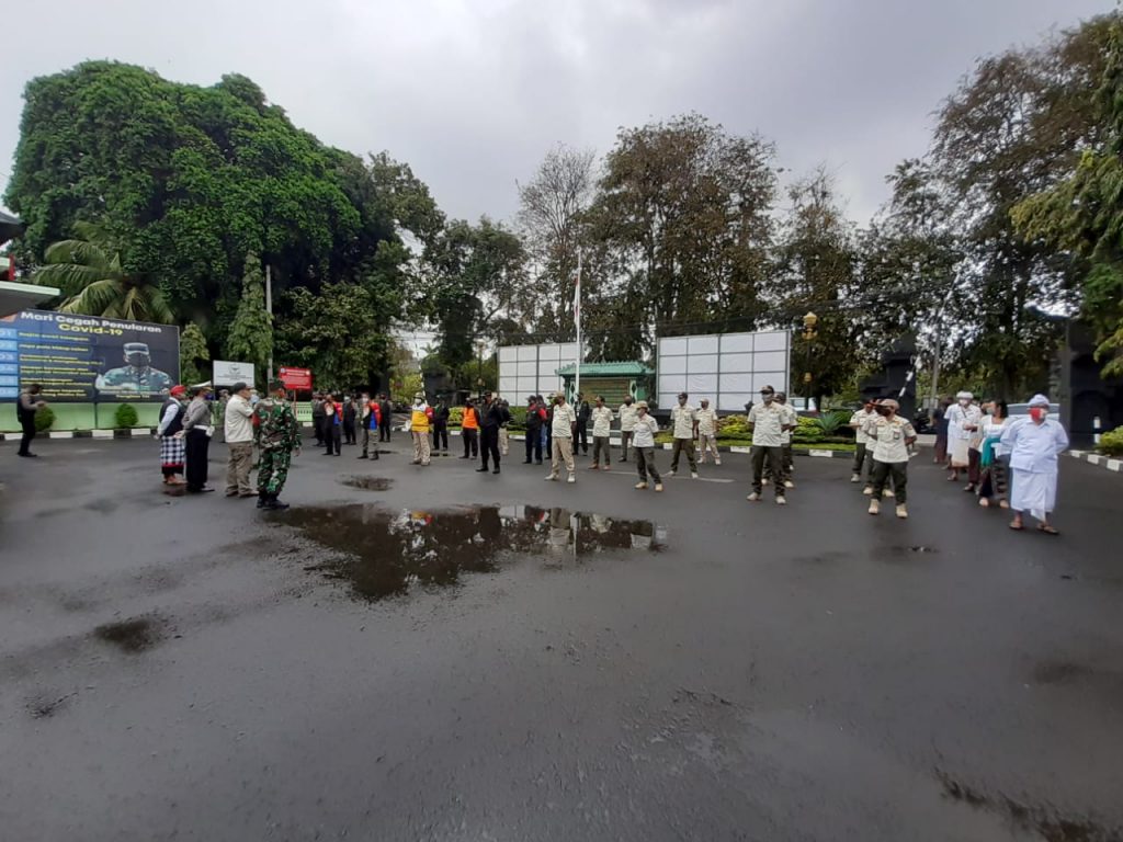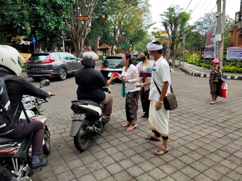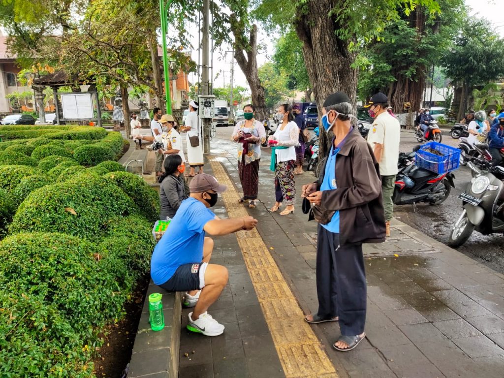 Giat Satuan Polisi Pamong Praja Provinsi Bali bersama Dinas Perhubungan, Satpol PP Kota Denpasar. TNI/Polri,Pecalang dan Relawan Sosialisasi, Edukasi terkait Peraturan Gubernur Nomor 46 Tahun 2020 Tentang Penerapan Disiplin dan Penegakan Hukum Protokol Kesehatan Cegah Penularan Covid-19 disertai Pembagian Masker di Sekitar Lapangan Puputan I Gusti Ngurah Made Agung Denpasar, Rabu 2 September 2020, Tetap Tenang, Waspada dan Disiplin.