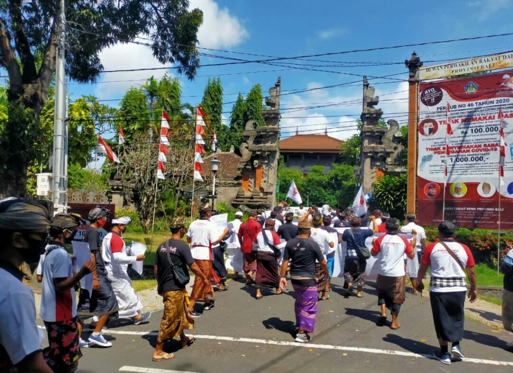 Giat Satuan Polisi Pamong Praja Senin 7 September 2020 atensi Aksi Damai oleh Forum Koordinasi Hindu Bali terkait Polemik keberadaan Hare Krisna yang dimulai di Depan kantor Gubernur Bali menuju Wantilan KantorDPRD Provinsi Bali.
