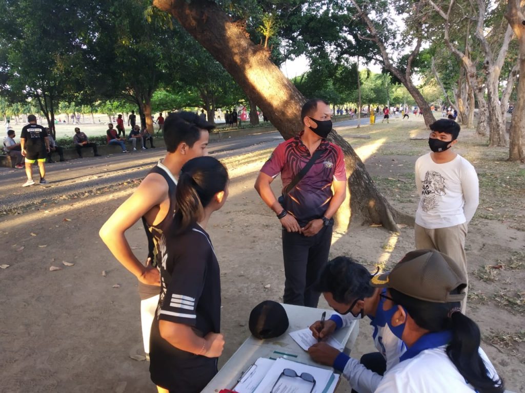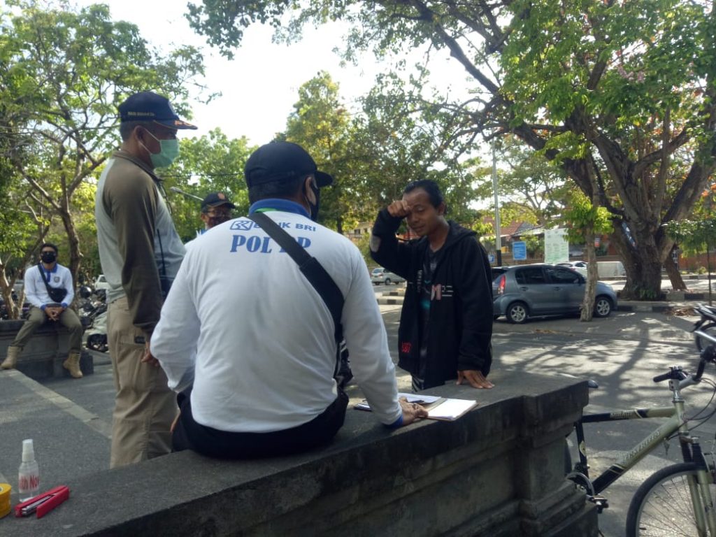 KITA BISA, KITA KUAT KITA MENANG Penegakan Peraturan Gubernur Bali No 46 Tahun 2020 Tentang Penerapan Disiplin dan Penegakan Hukum Protokol Kesehatan Sebagai Upaya Pencegahan dan Pengendalian Covid-19 Dalam Tatanan Kehidupan Era Baru, dilaksanakan Satpol PP Prov. Bali dan TNI/Polri, di Lapangan Pupuitan Margarana, Hari Minggu 13 September 2020. Bagi Satpol PP tidak mengenal hari libur demi keselamatan warga masyarakat dalam upaya pencegahan pandemi Covid-19.