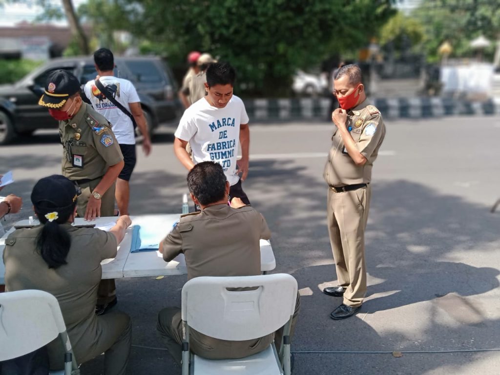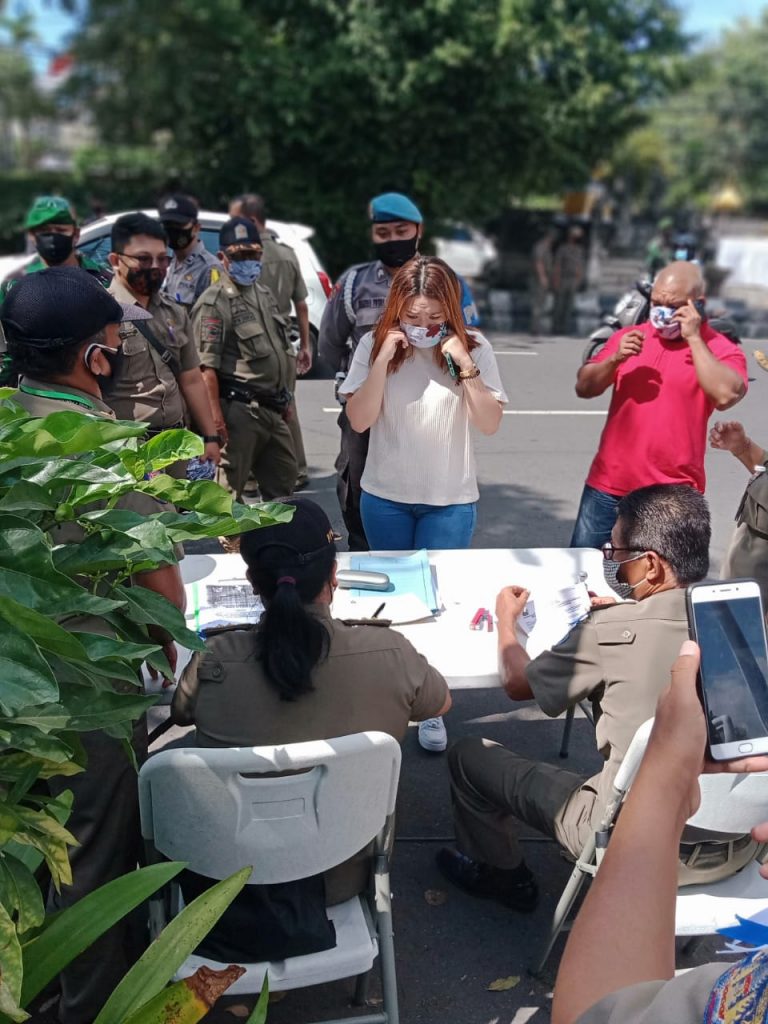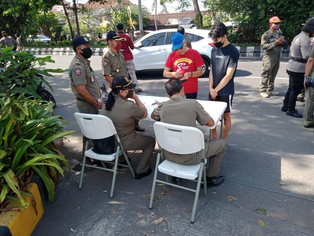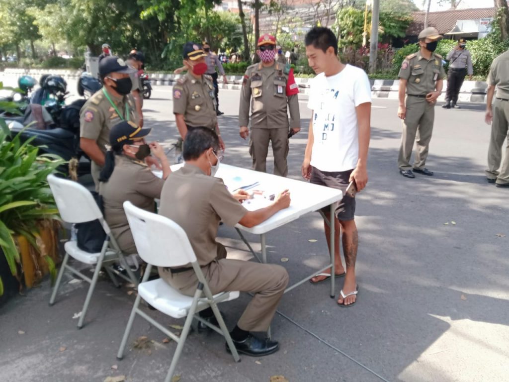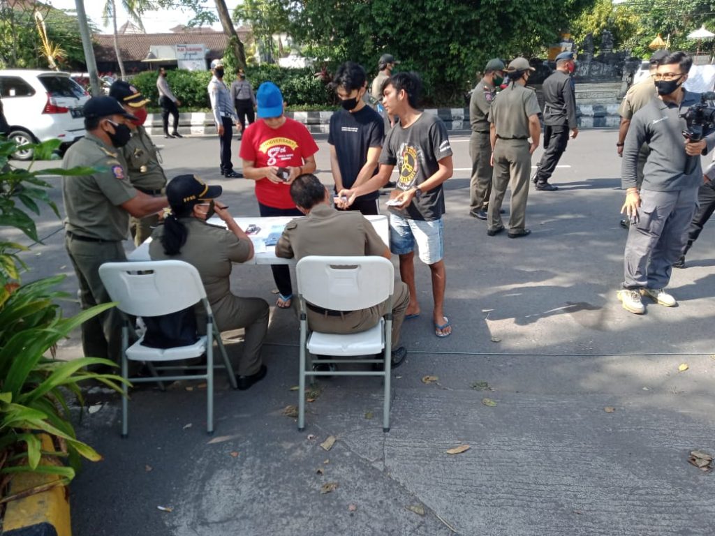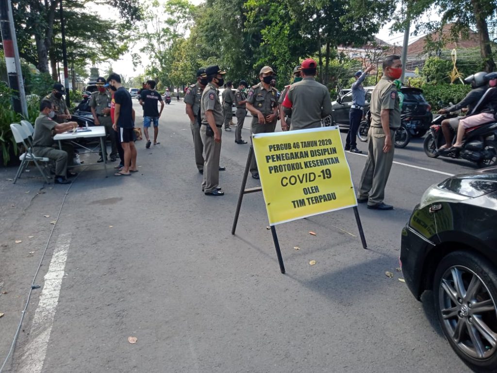 KITA BISA, KITA KUAT KITA MENANG Penegakan Peraturan Gubernur Bali No 46 Tahun 2020 Tentang Penerapan Disiplin dan Penegakan Hukum Protokol Kesehatan Sebagai Upaya Pencegahan dan Pengendalian Covid-19 Dalam Tatanan Kehidupan Era Baru, dilaksanakan Satpol PP Prov. Bali, Dinas Perhubungan Provinsi Bali dan TNI/Polri, di Bundaran Renon , Hari Senin 14 September 2020 dari pukul 09.00 s.d 10.30 Wita. Dalam Operasi tersebut terjaring 11 pelanggar dengan rincian 10 orang membayar sanksi administrasi secara tunai dan 1 orang non tunai.