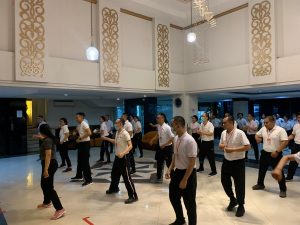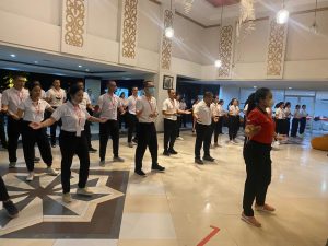 Giat Tim Pelatih Jasmani Satuan Polisi Pamong Praja Provinsi Bali dalam Latihan Dasar Calon Pegawai Negeri Sipil Tahun Anggaran 2022, di Hotel Nirmala dengan kegiatan senam bersama serta permainan.