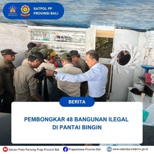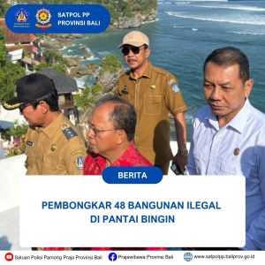 Pembongkaran bangunan di Pantai Bingin ini dilakukan menindaklanjuti surat perintah pembongkaran Bupati Badung Nomor 600.1.15.2/14831/SETDA/SAT.POL.PP, tanggal 15 Juli 2025, Gubernur Bali didampingi Bupati Badung, Kasat Pol PP Provinsi Bali dan Kasat Pol PP Badung dan segenap jajaran melakukan pembongkaran, di Pantai Bingin, Desa Pecatu, Badung, Senin (21/7/2025). Pelanggaran yang dilakukan terhadap Peraturan Daerah Provinsi dan Peraturan Daerah Kabupaten/Kota mengenai tata ruang, yang merupakan kawasan hijau, dan tidak ada yang berizin, pemberian Surat Peringatan sudah dilakukan, namun karena tidak ada upaya mengindahkan dan setelah mendapat rekomendasi dari DPRD Bali, maka proses pembongkaran dilakukan. Bangunan wisata ilegal ini merupakan usaha wisata berbentuk villa, restoran, homestay, penginapan dan bangunan wisata sejenisnya.