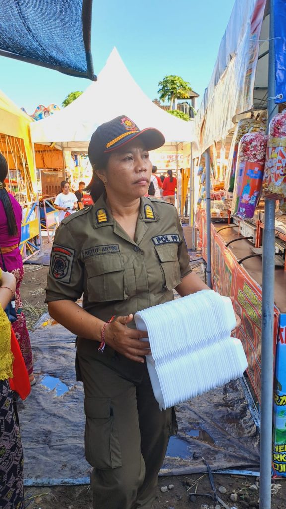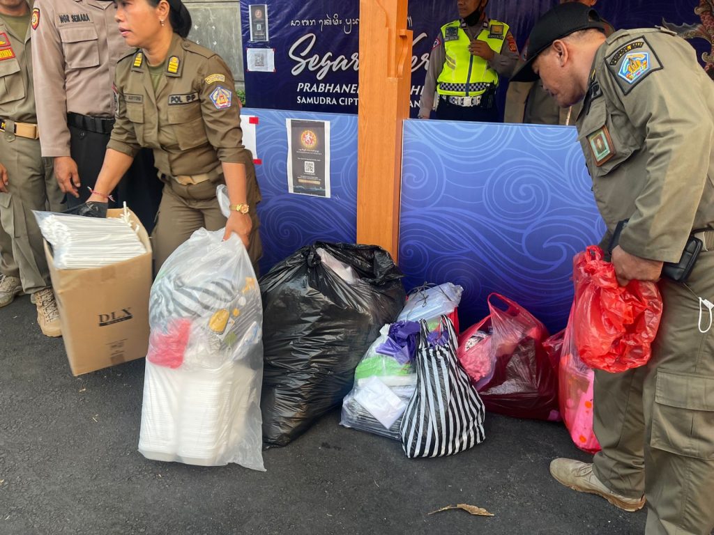 atuan Polisi Pamong Praja bersama OPD terkait selama berlangsungnya Pesta Kesenian Bali ke-45 laksanakan penegakan Peraturan Gubernur Bali Nomor 97 Tahun 2018 tentang Pembatasan Timbulan Sampah Plastik Sekali Pakai di Area Taman Budaya yang menjadi ajang Pesta kesenian Bali dari tanggal 18 Juni sampai dengan 16 Juli 2023. Kegiatan dilaksanakan setiap saat dengan menyasar pedagang dan pengunjung yang masih memanfaatkan Plastik Sekali Pakai, yang selanjutnya disingkat PSP, adalah segala bentuk alat/bahan yang terbuat dari atau mengandung bahan dasar plastik, lateks sintetis atau polyethylene, thermoplastic synthetic polymeric dan diperuntukkan untuk penggunaan sekali pakai. Kantong plastik adalah kantong yang terbuat dari atau mengandung bahan dasar plastik, dengan atau tanpa pegangan tangan, yang digunakan sebagai wadah untuk mengangkat atau mengangkut barang dan Polysterina (styrofoam) adalah polimer turunan hidrokarbon yang terbuat dari monomer stirena, bersifat termoplastik padat, dan tergolong senyawa aromatik serta digunakan untuk tujuan wadah makanan/minuman, pengembangan barang maupun dekorasi. Sedotan plastik adalah sedotan plastik lepasan baik yang disediakan secara eceran maupun grosiran serta tidak melekat sebagai satu kesatuan dengan kemasan minuman. Kegiatan ini mendapat apresiasi dari masyarakat pengunjung Pesta Kesenian Bali sehingga kegiatan Pesta Kesenian Bali bebas plastik.