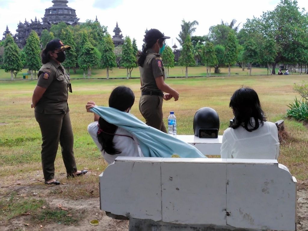 Satuan Polisi Pamong Praja Provinsi Bali secara rutin laksanakan giat Penegakan Peraturan Gubernur Bali Nomor 10 tahun 2021 dan Surat Edaran Gubernur Bali No. 14 Tahun 2021 tentang Perpanjangan PPKM Level 4 Corona Virus Disease 2019 dalam Tatanan Kehidupan Era Baru. Giat menyasar Objek-objek ruang publik yang berpeluang menimbulkan kerumanan yang mengakibatkan terjadinya penularan Covid-19. Lapangan Monumen Perjuangan Rakyar Bali adalah fasilitas ruang publik yang disediakan Pemerintah bagi masyarakat. Namun pada saat kondisi masa PPKM Level 4 belum bisa dimanfaatkan. Satpol PP hadir untuk mengingatkan memberikan pembinaan dan imbauan agar untuk mentaati kebijakan yang diambil Pemerintah. Tujuan utamanya adalah terjadinya pemutusan mata rantai penyebaran Covid-19 di Bali dan Kehidupan Bali Era Baru segera terwujud. Denpasar, 3-4 September 2021.