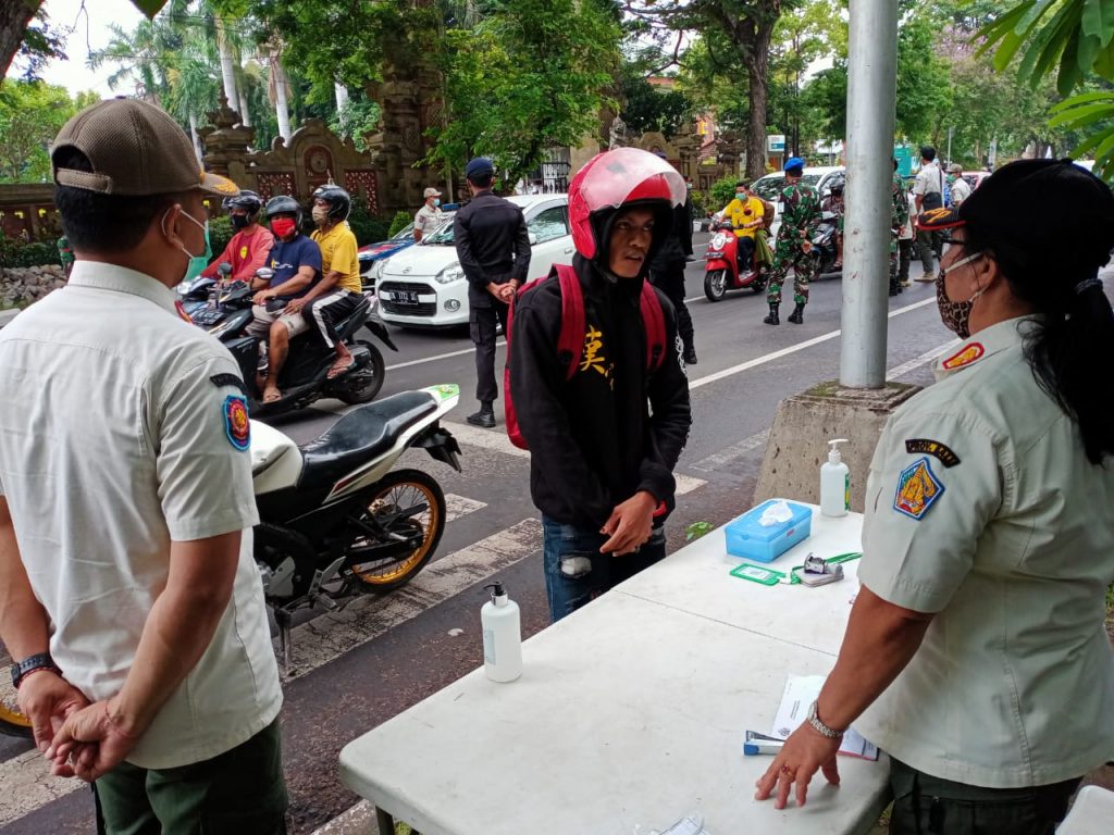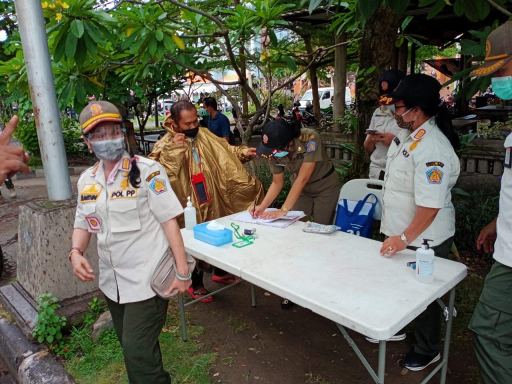 Terus Bergerak ……………………………………………………….. Giat Satuan Polisi Pamong Praja Provinsi bersama Instansi terkait TNI/POLRI bahu membahu laksanakan pengawasan Pergub 46 Tahun 2020 tentang Penerapan disiplin dan Penegakan Hukum Protokol Kesehatan sebagai Upaya Pencegahan dan Pengendalian Covid-19 dalam Tatanan Kehidupan Era Baru. Jl. Letda Tantular Renon Denpasar, 2 Desember 2020.