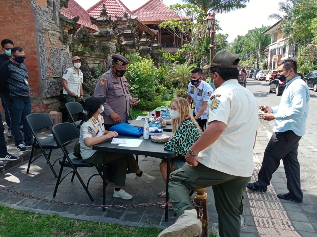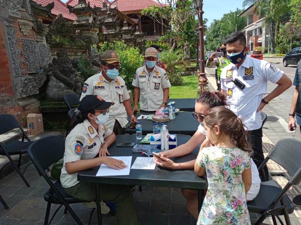 Giat gabungan Tim Reaksi Cepat Satpol PP Provinsi Bali bersama Kantor Imigrasi, Polda Bali, Polres Gianyar dengan kekuatan seluruhnya sebanyak 59 personil laksanakan penegakan Peraturan Gubernur Nomor 10 Thun 2021 dan SE Nomor 09 Tahun 2021 terkait Masa PPKM Darurat. Tujuan dari kegiatan ini adalah memastikan bahwa masyarakat dengan kesadaran penuh mentaati protokol kesehatan dalam beraktifitas di luar rumah. Lokasi kegiatan di wilayah Kecamatan Ubud Kab. Gianyar yang merupakan salah satu tempat kunjungan favorit wisatawan luar negeri. Pada kegiatan tersebut masih ditemukan beberapa WNA yang melanggar peraturan pada masa PPKM Darurat. Sehingga dengan sangat terpaksa dikenai sanksi adminsitrasi dengan tujuan memberikan efek jera bagi pelanggar dan masyarakat. Ubud, 14 Juli 2021.